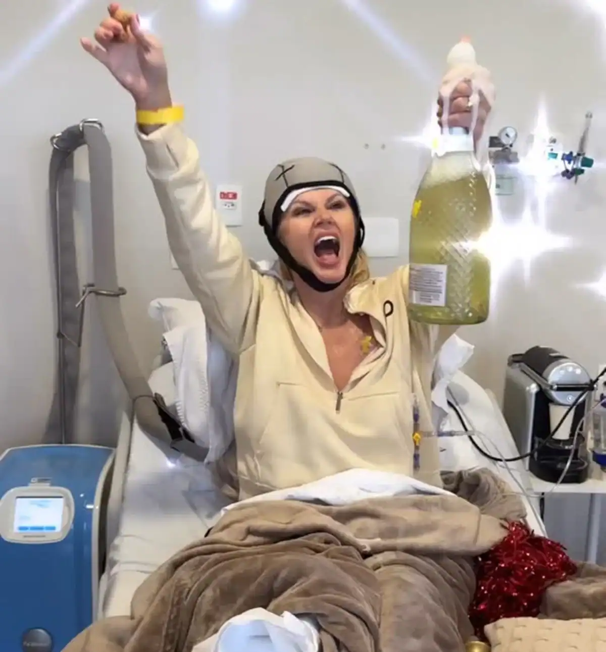 “E, sim, até o champanhe está aqui, mesmo sem ser bebido… porque a vida merece ser brindada. 🥂 Gratidão a Deus, à minha família e a todos que seguraram minha mão. 🤍”, concluiu.