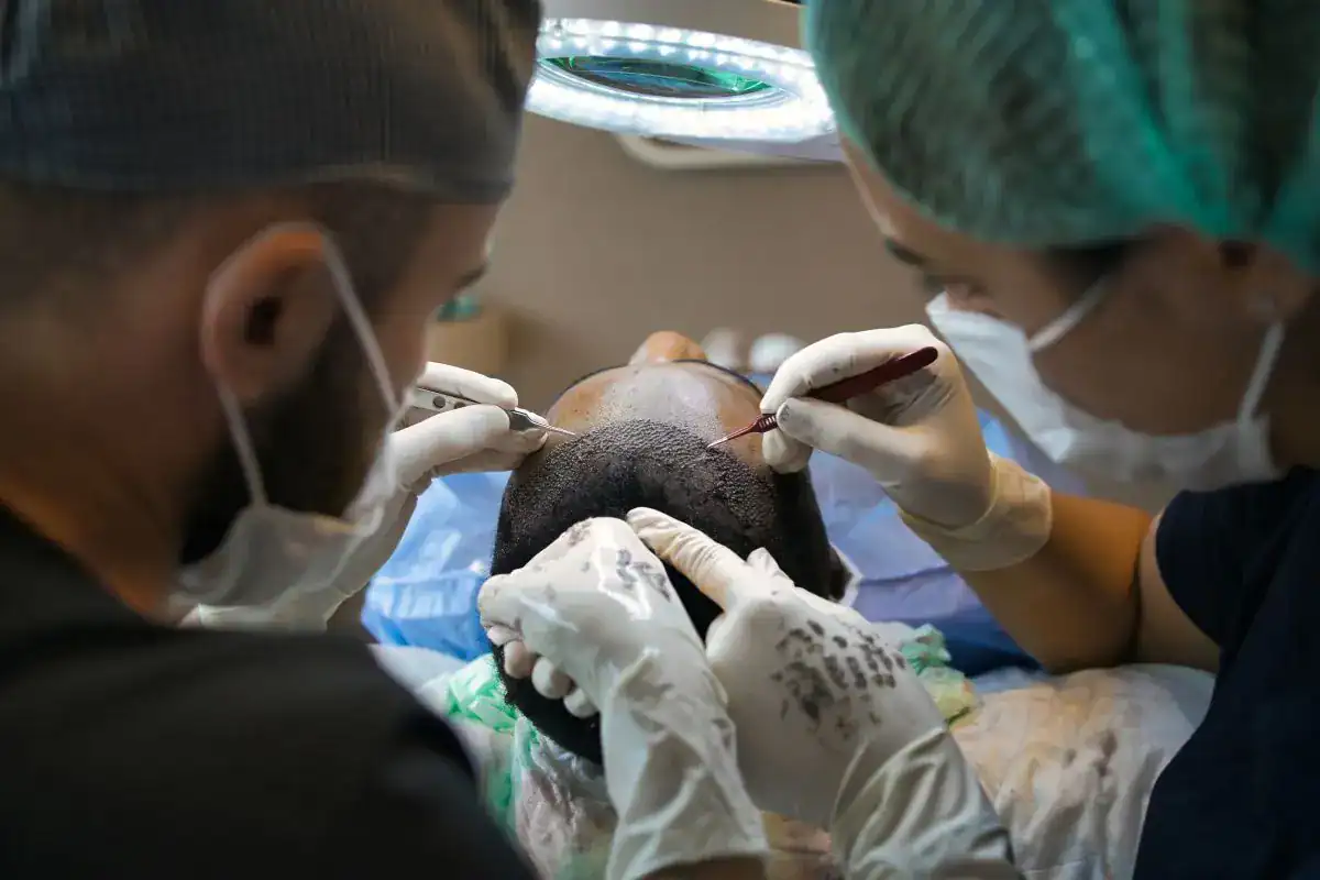 Equipa médica realiza procedimento de transplante capilar FUE em paciente. (Foto: Instagram)