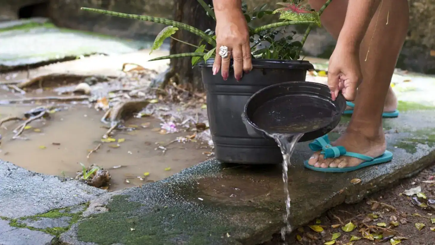 Moradora esvazia água de vaso para prevenir proliferação do Aedes aegypti. (Foto: Instagram)