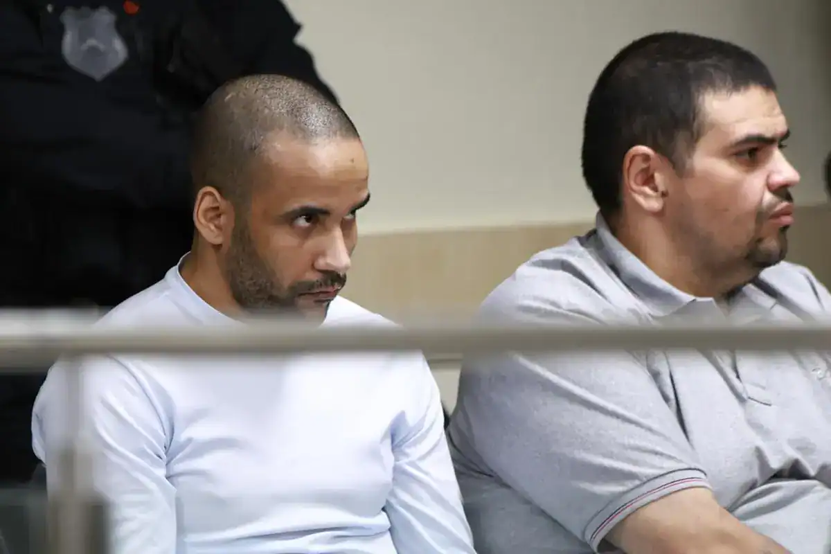 "Carlin" apareceu com o cabelo raspado e foi o primeiro réu sentado da esquerda para a direita.