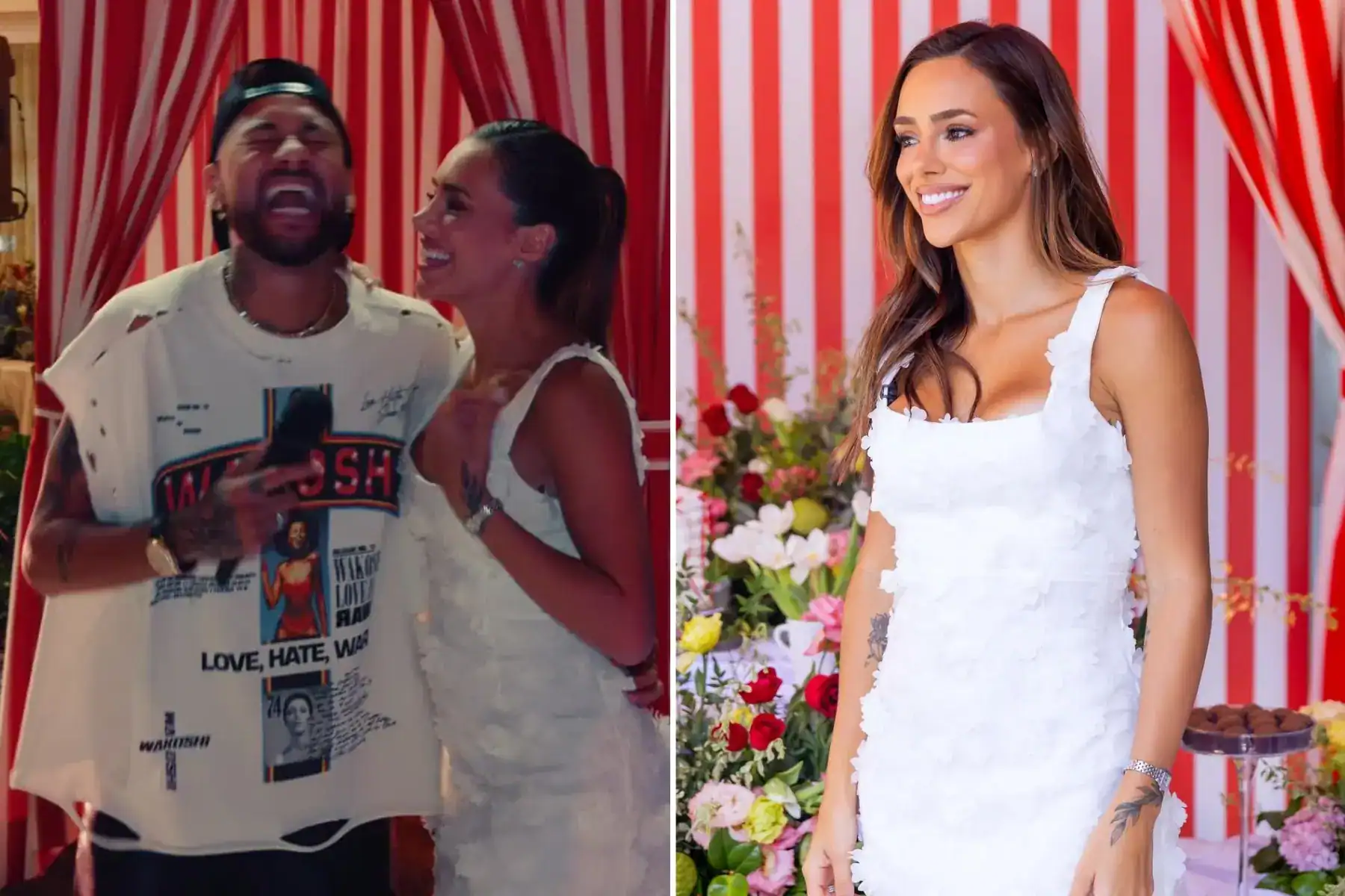 Neymar também participou do evento musical. Em vídeos compartilhados nas redes sociais, ele aparece ao lado de Dilsinho no palco, cantando durante a apresentação. Em outros momentos da festa, Neymar e Bruna posaram para fotos ao lado de Mavie e Mel, filhas do casal, registrando a comemoração.