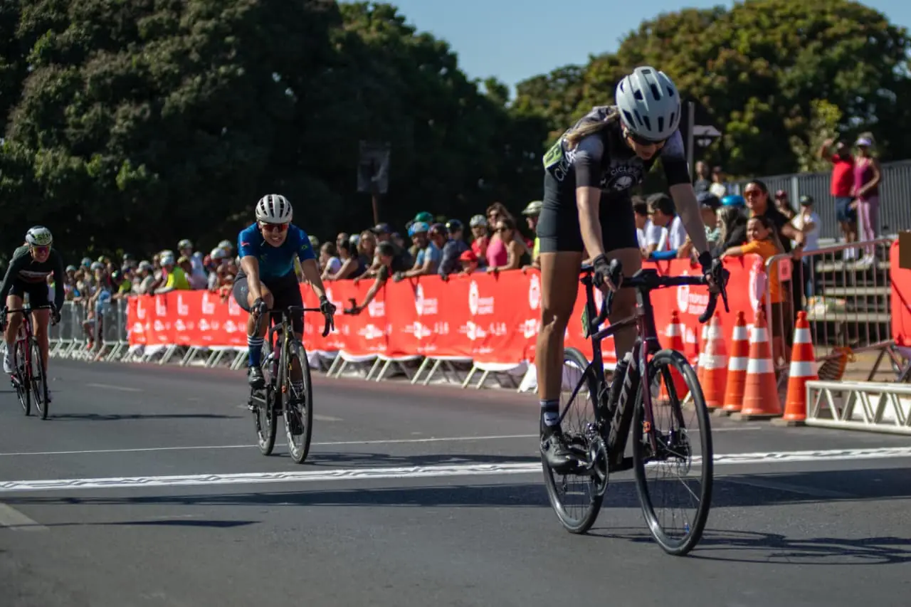 Ciclistas aceleram rumo à linha de chegada no Autódromo Internacional Nelson Piquet. (Foto: Instagram)