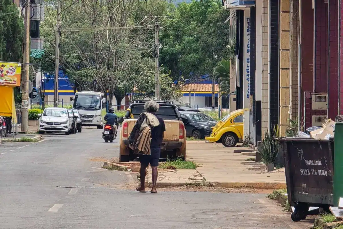 Morador de rua recolhe recicláveis em via da Asa Norte, Brasília (Foto: Instagram)
