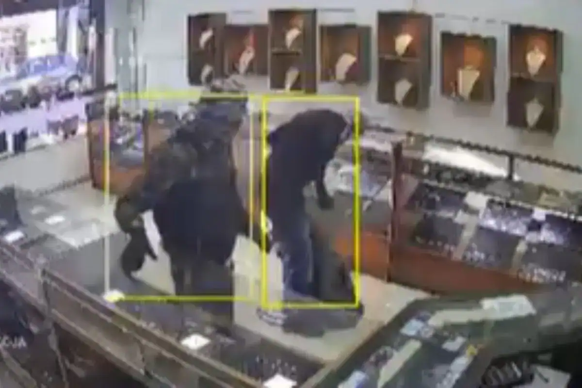 No vídeo, é possível ver três homens correndo para dentro da loja. Dois deles imediatamente começam a quebrar os vidros das vitrines para roubar as joias. O terceiro se dirige a um funcionário e arranca uma corrente do pescoço da vítima.