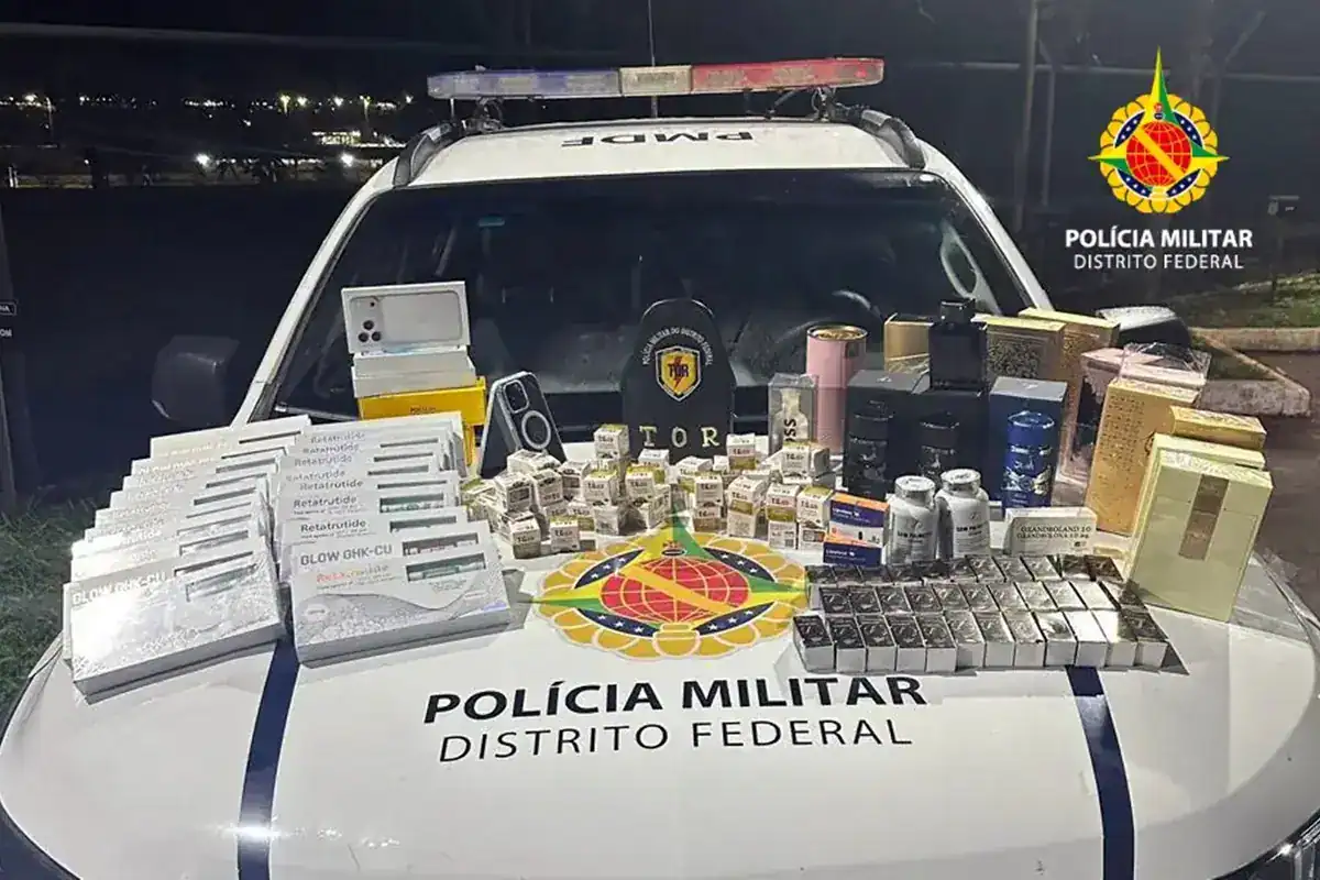 Em posse do suspeito, foram encontrados 68 frascos de tirzepatida e 15 de retatrutida, usados em canetas emagrecedoras. A PMDF também apreendeu 36 ampolas de anabolizantes, 15 perfumes de origem não verificada, cinco sinalizadores de colágeno e cinco celulares.