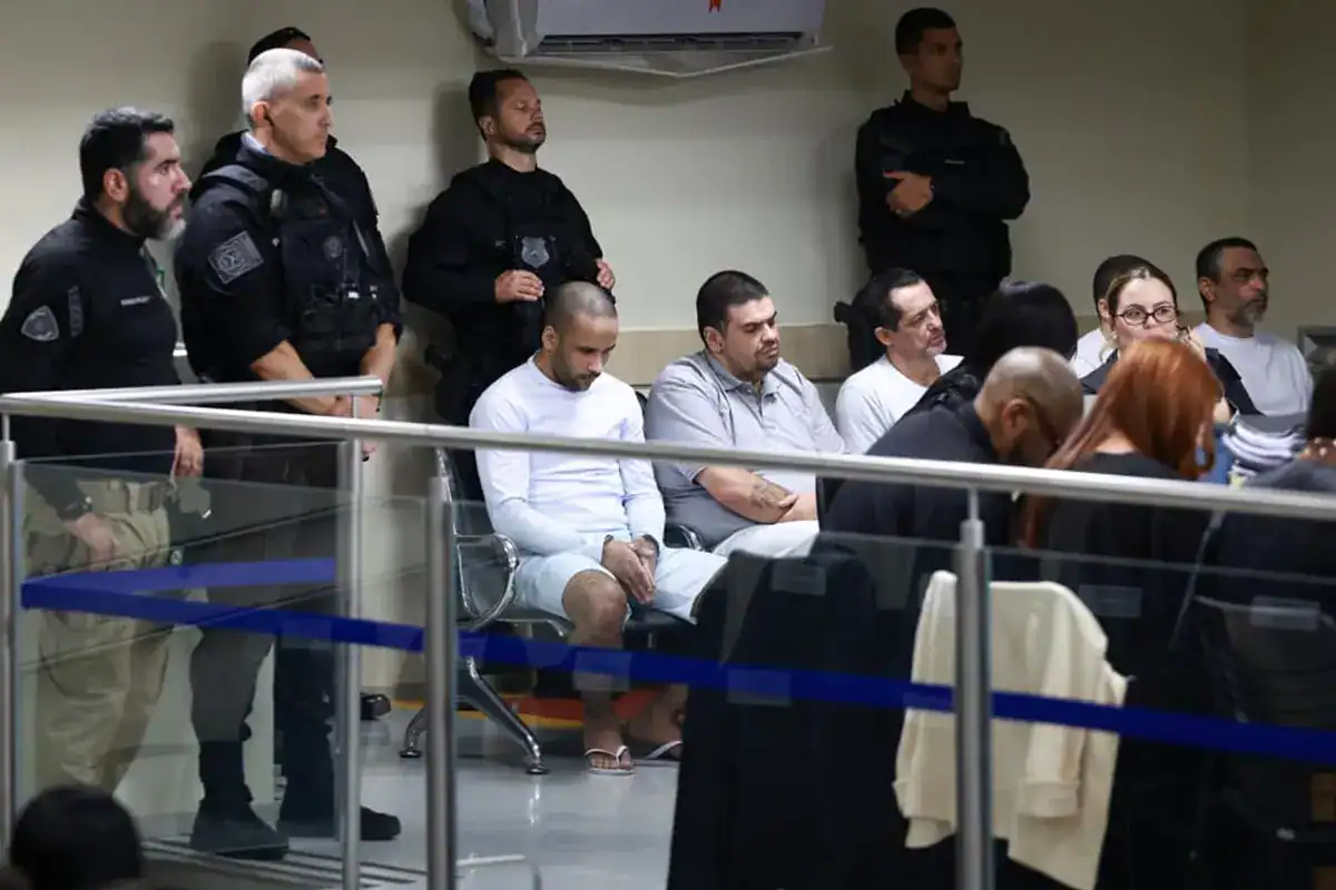Réus acomodados durante o 6º dia de julgamento da maior chacina do DF (Foto: Instagram)