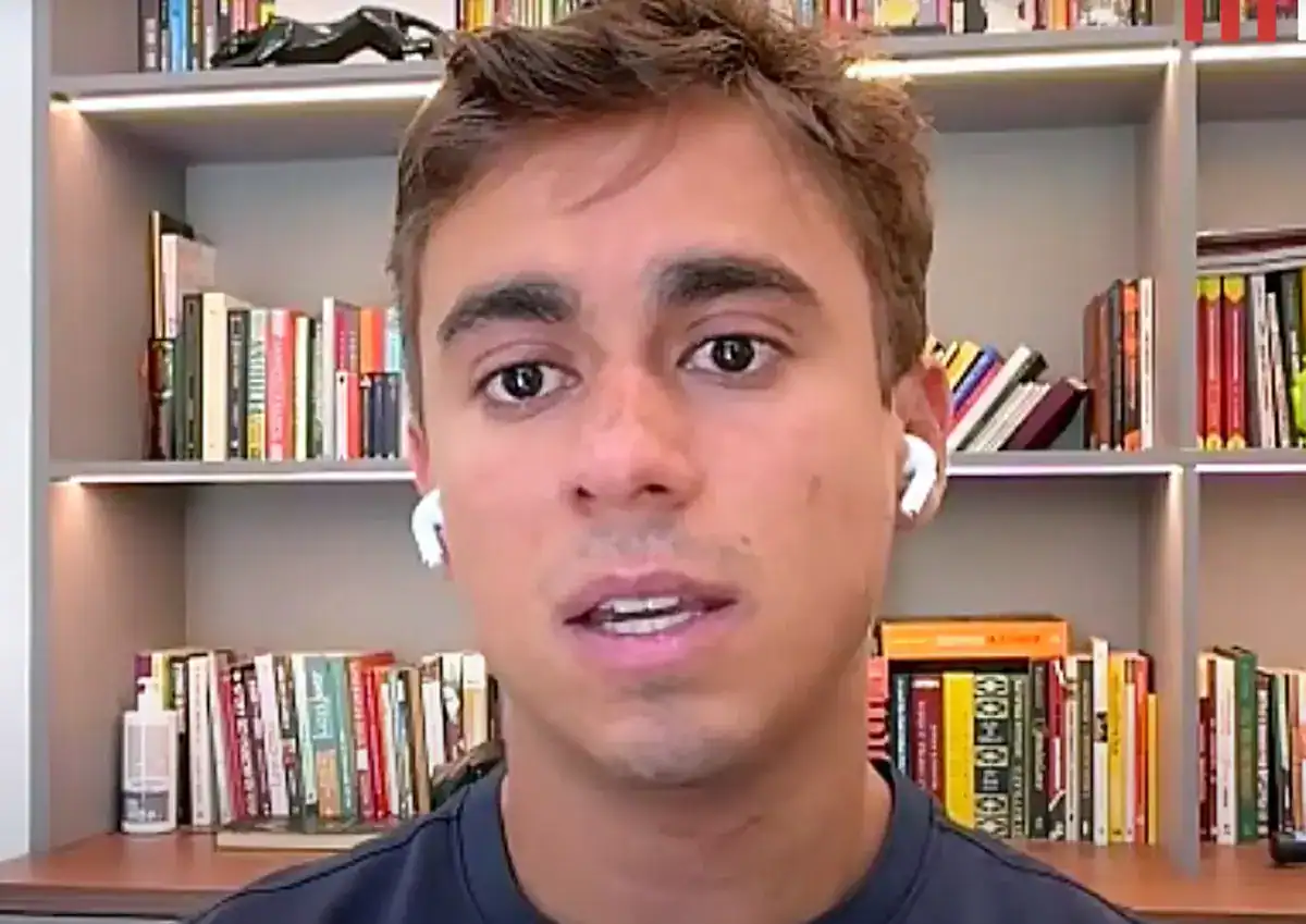 Deputado Nikolas Ferreira em vídeo, com estante de livros ao fundo. (Foto: Instagram)