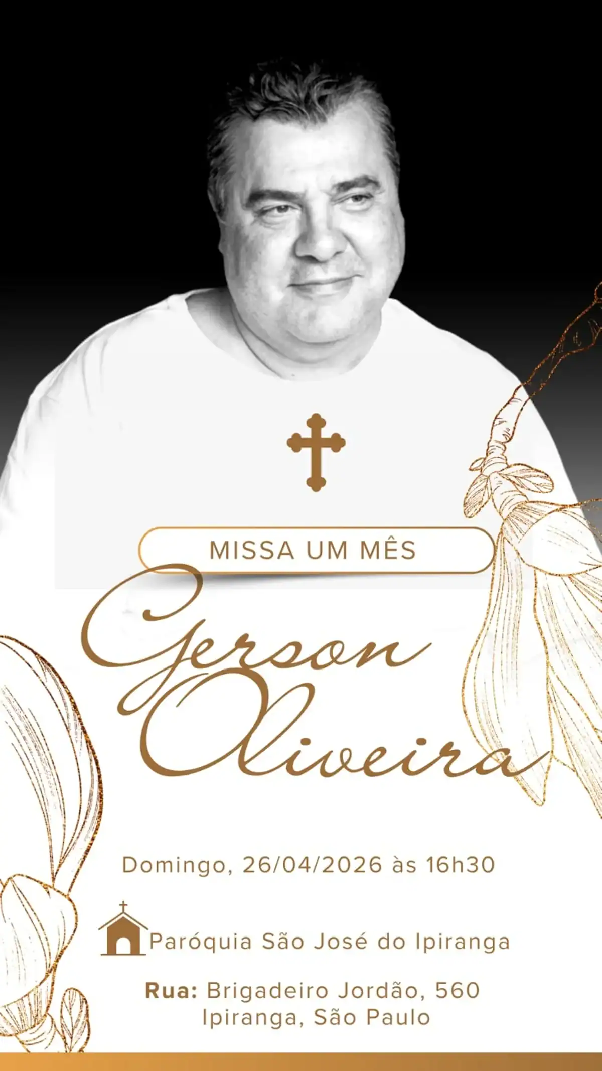 Conforme informado pela família, a cerimônia em homenagem a Gerson Brenner ocorrerá no domingo (26/4), a partir das 16h30, na paróquia São José do Ipiranga, localizada na rua Brigadeiro Jordão, 560, no Ipiranga, em São Paulo.