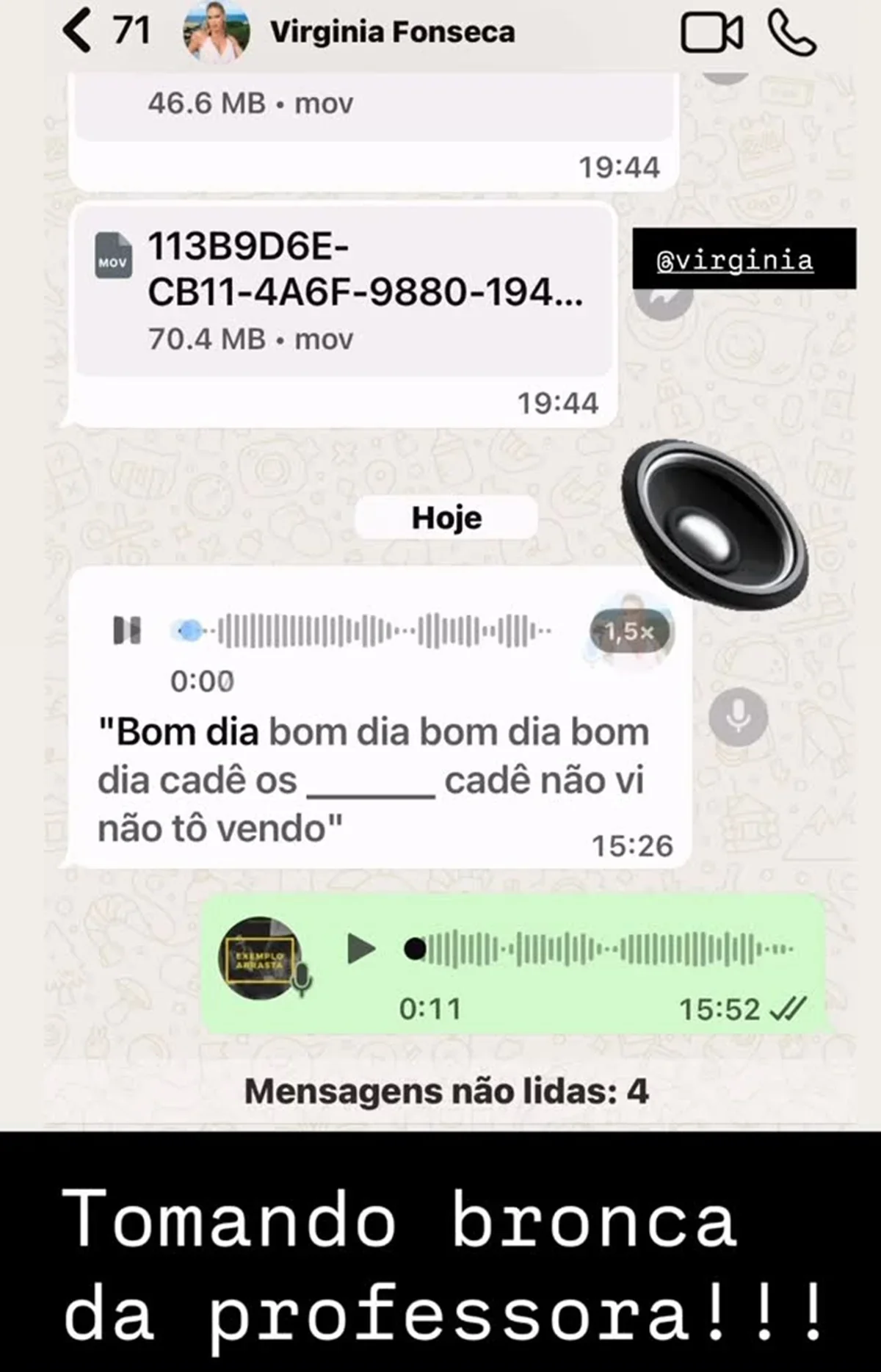 Ele, então, respondeu: “Oh professora, eu fiz o que a senhora mandou. É porque não tinha subido. Eu não sabia que se eu gravasse os stories com o telefone e não colocasse para subir não subia, agora eu subi. Veja lá, que eu coloquei até tutorial de maquiagem”, brincou.